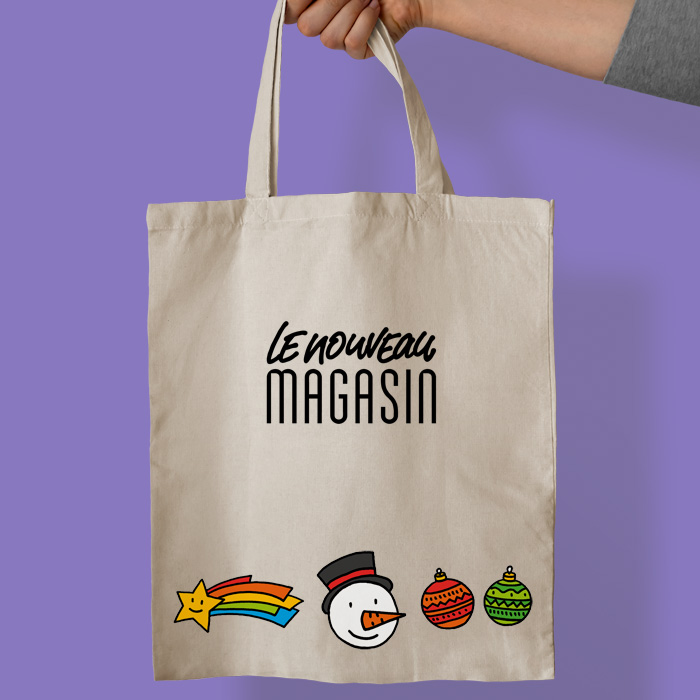 Des éléments graphiques pensés pour être déclinés sur des tote bags personnalisés, lors d’une soirée spéciale organisée en magasin.